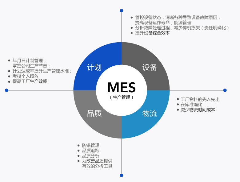管理生產(chǎn)活動(dòng)的所有行為,包含 生產(chǎn)計(jì)劃,生產(chǎn)實(shí)績(jī),生產(chǎn)工藝,品質(zhì)管理,品質(zhì)追蹤,設(shè)備管理,倉(cāng)儲(chǔ)管理,能源管理等;