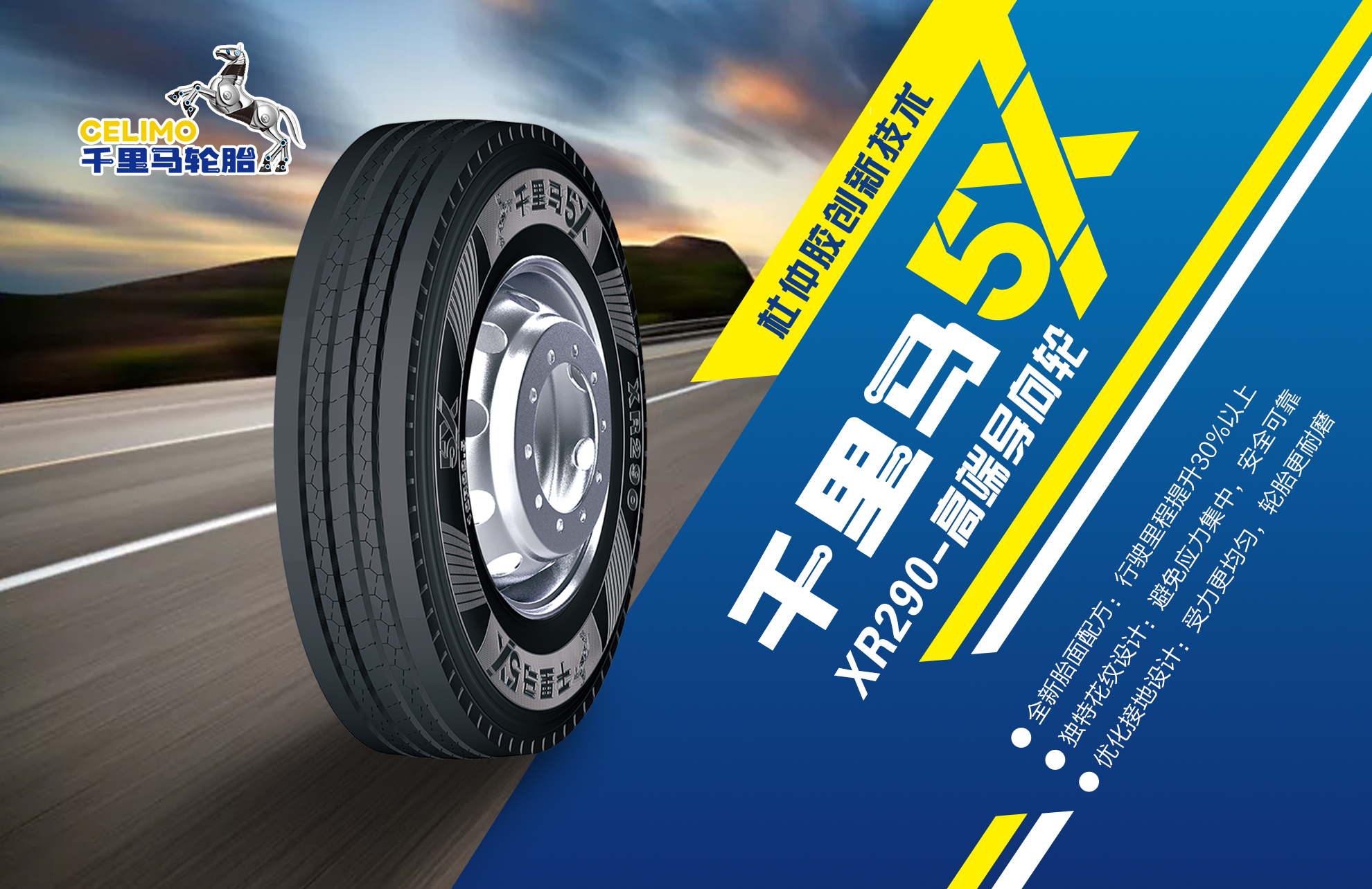近日,通用股份最新研發成果——全鋼中長途真空胎千里馬5X XR290即將隆重推出,創新應用杜仲膠配方,大幅提升輪胎耐磨性能,志在挑