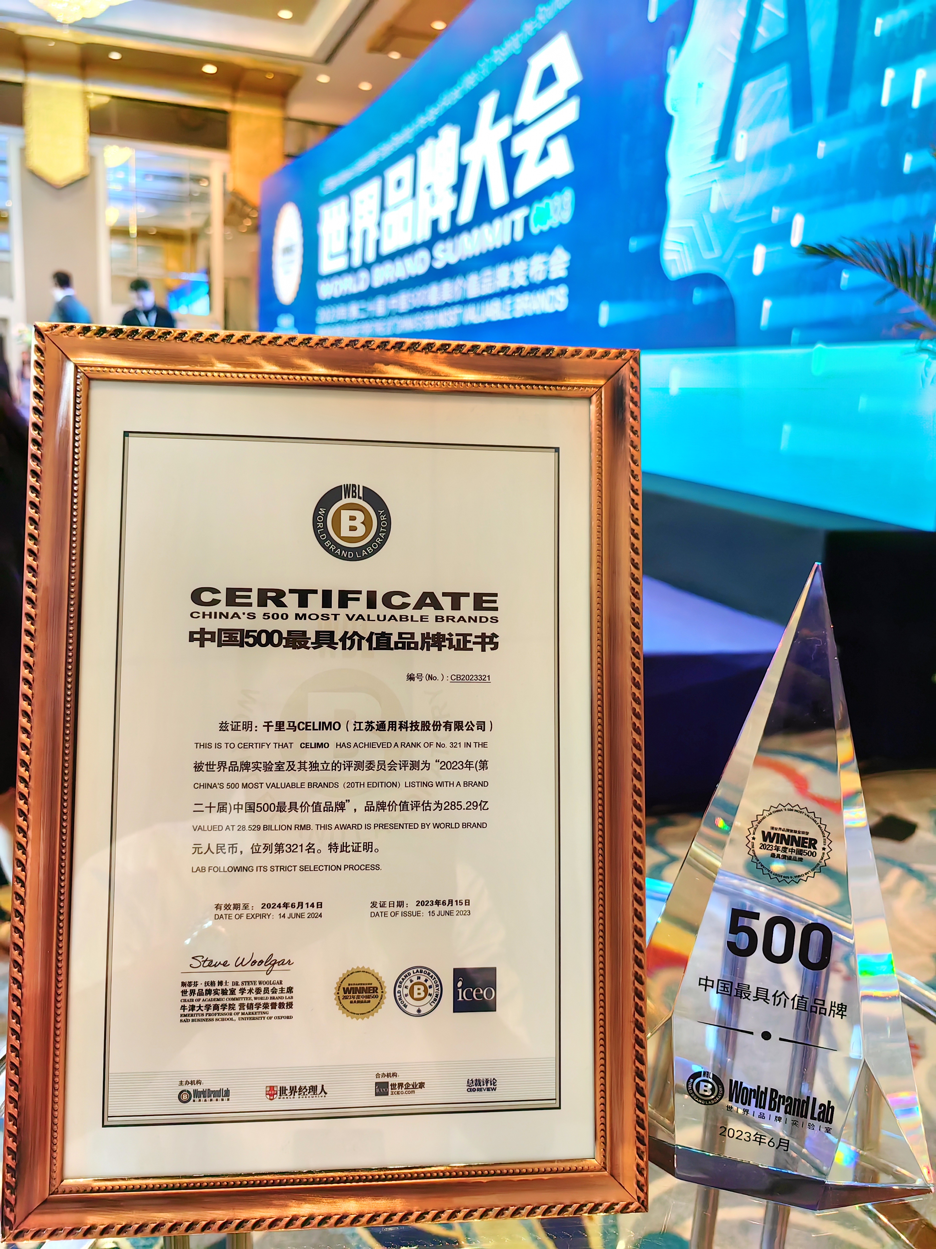 6月15日,由世界品牌實驗室主辦的第二十屆“世界品牌大會”暨2023年中國500最具價值品牌發布會在北京成功舉行。通用股份旗下千里馬品牌以285.29億元的品牌價值評估再次成功上榜,位列第321位,品牌價值與影響力進一步提升。