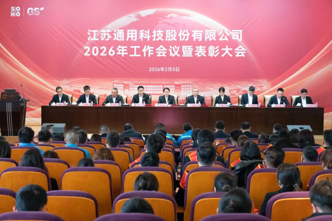 2月5日,通用股份召開2026年工作會議暨表彰大會,會議以習近平新時代中國特色社會主義思想為指導,深入學習貫徹黨的二十屆四中全會、中央經濟工作會議精神,全面總結公司2025年工作,分析發展形勢,系統部署2026年重點任務。蘇豪控股集團黨委委員、副總裁晉永甫出席會議并講話。公司黨委書記、董事長賈國榮,黨委副書記、總經理顧萃等領導班子成員及全體員工現場參會。泰國、柬埔寨海外基地全體員工線上同步參會。