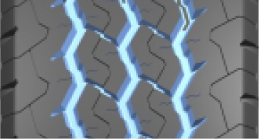 三條寬闊的曲折排水溝槽,有效防止輪胎側(cè)向打滑;S型花紋設(shè)計(jì),提高輪胎制動(dòng)剎車性能。